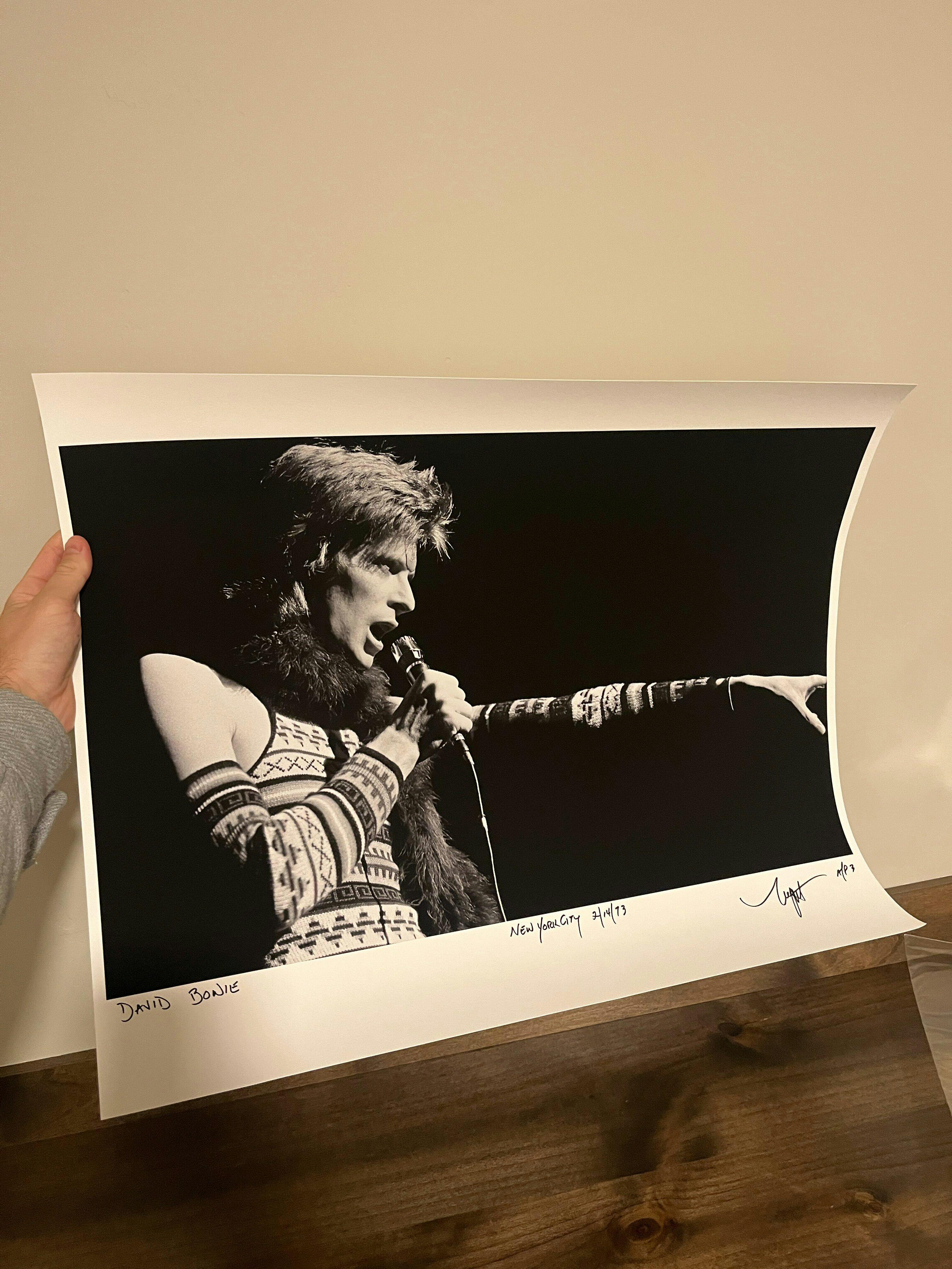 Capture the iconic style and charisma of David Bowie with this limited edition print from 1976, photographed by Andrew Kent. A must-have for any fan or collector, add a touch of sophistication and exclusivity to your space with this premium piece. Limited quantities available.